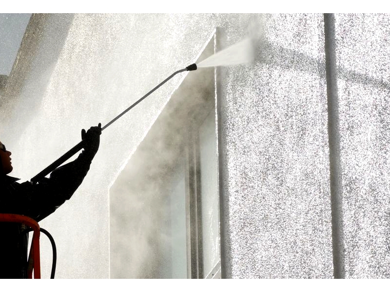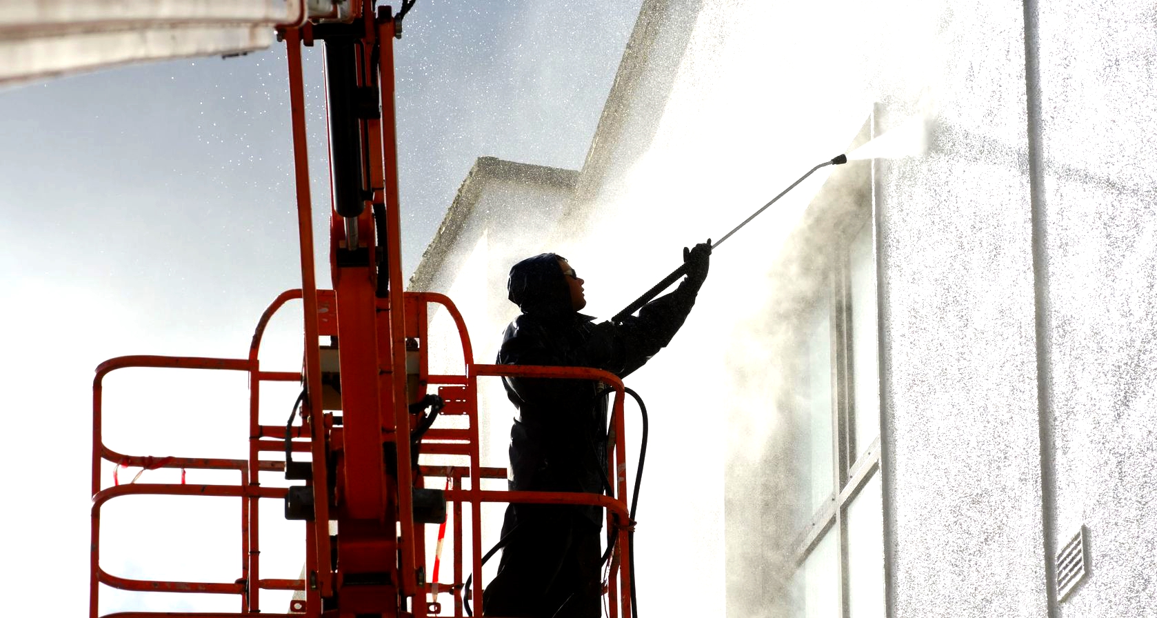 4. Muros y Fachadas: Lavamos y restauramos a presión fachadas de todo tipo de material, hacemos lavado y mantenimiento en alturas en vidrios, alucobond, y cualquier otro material.